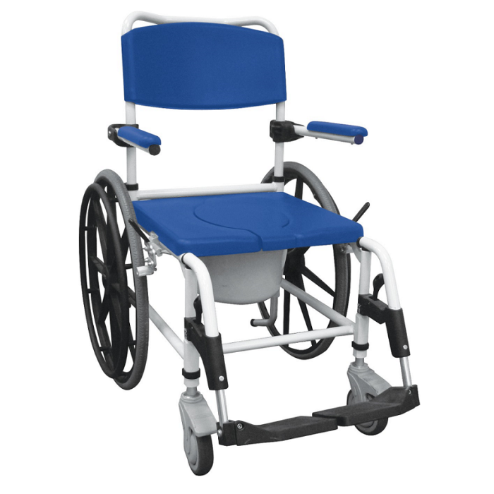 - Can be positioned over a standard toilet or used as a portable self-contained commode.