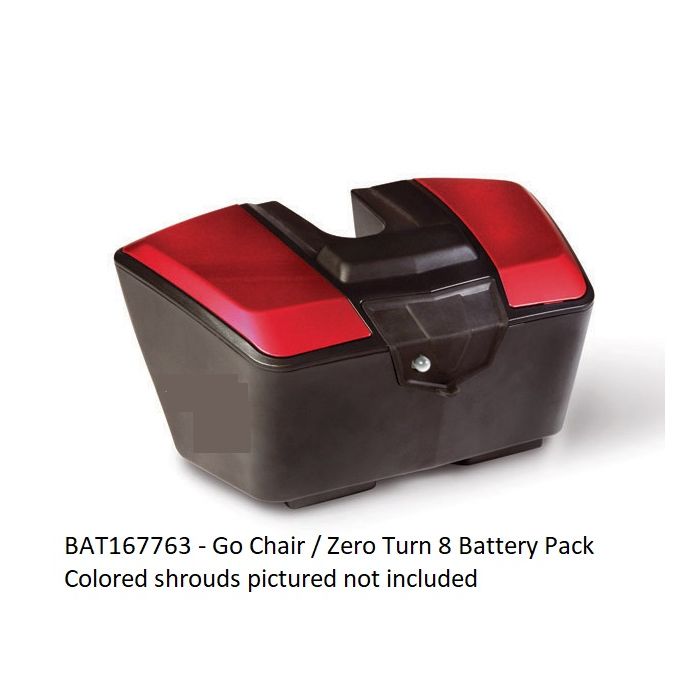 This Battery Pack works for both the Pride Go Chair and the Pride Zero Turn 8