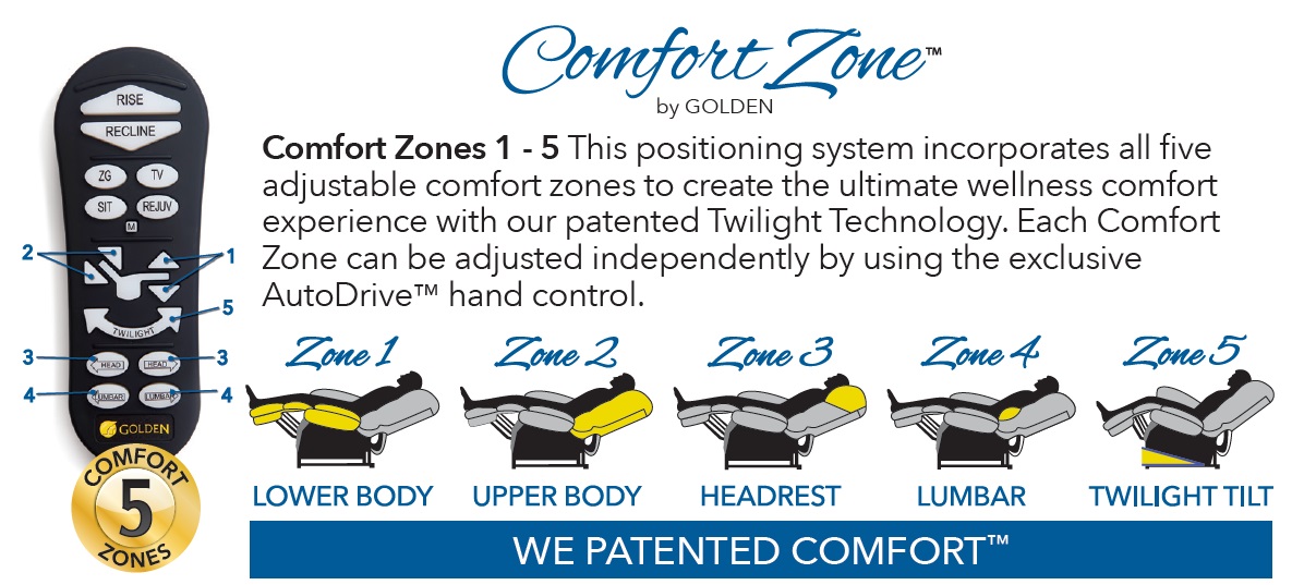 The Titan Power Lift Recliner with Twilight Positioning using our patented 5-motor cradle technology offers an array of rejuvenating options to ease the body and mind.